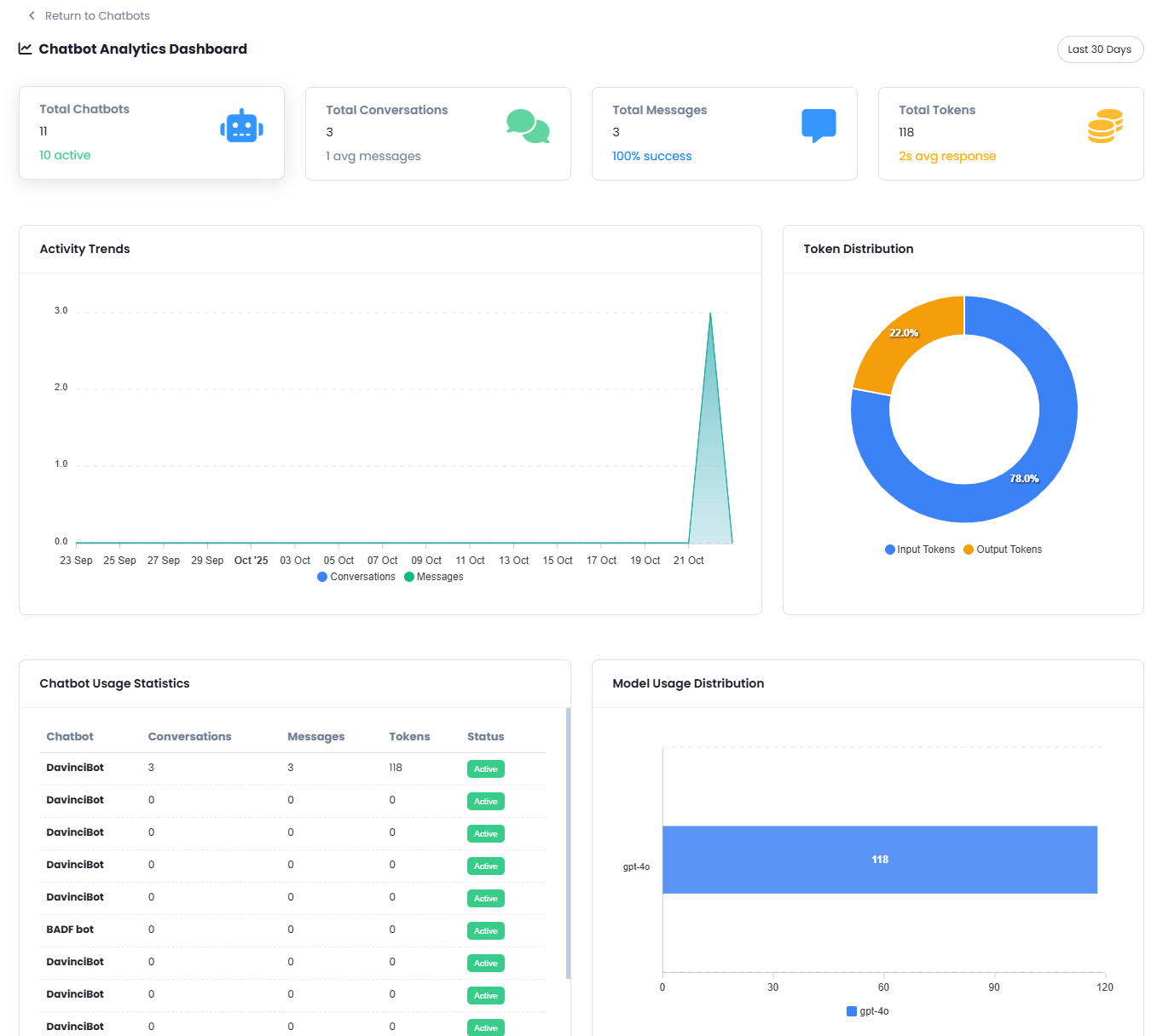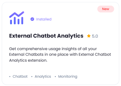Unlock the full potential of your external chatbots with the External Chatbot Analytics extension, your all-in-one solution for comprehensive usage insights in a single, intuitive dashboard. This powerful tool empowers businesses to monitor and optimize chatbot performance like never before, providing a clear view of key metrics to drive smarter decision-making. With features like Activity Trends to track engagement over time, Token Distribution and Token Consumption by Chatbot to manage resource allocation, Chatbot Usage Statistics and Model Usage Distribution to understand interaction patterns, Channel Performance to evaluate effectiveness across platforms, Top Domains to identify high-impact sources, and Detailed Conversation Analysis to dive deep into user interactions, this extension delivers actionable data to enhance efficiency, improve user experiences, and maximize ROI. Take control of your chatbot ecosystem and elevate your strategy with External Chatbot Analytics today!Included Features
