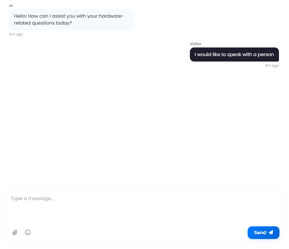 - As soon as Human Agent clicks on Accept button, a textarea will apear under the messages section of that conversation, and Human Agent can start the live conversation.