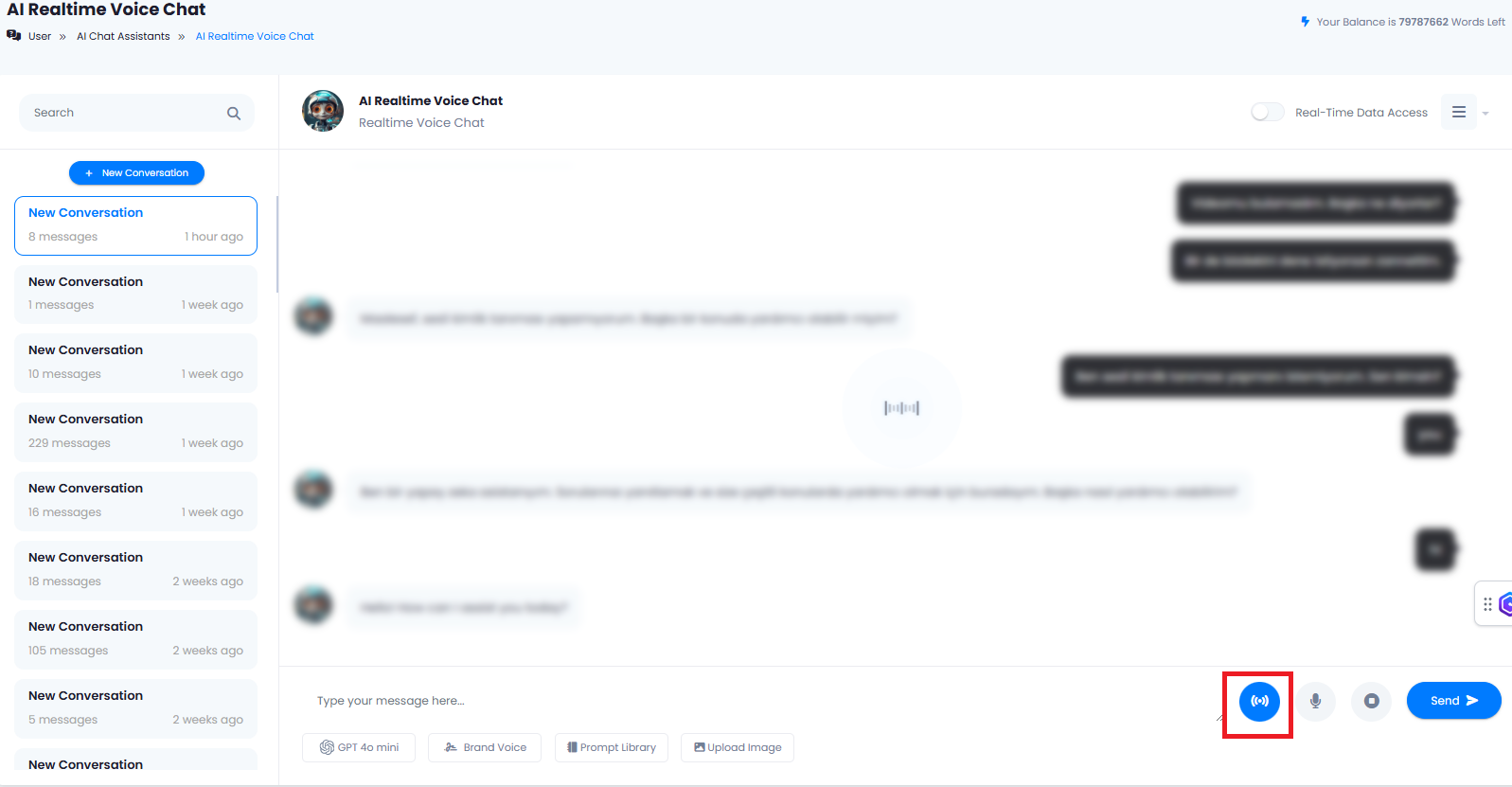 After you are done with the configuration of AI Realtime Voice Chat feature, it will appear on the User panel there you can start using this extension.- Go to AI Realtime Voice Chat tab in the User panel