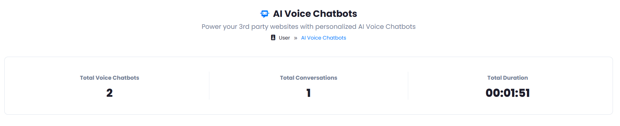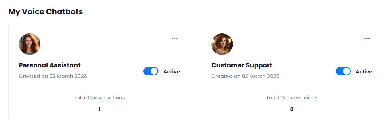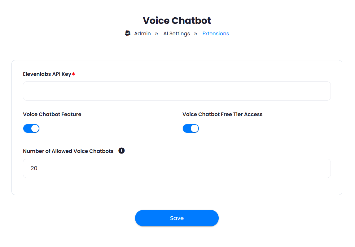- Set Number of Allowed Voice Chatbots that users can create.