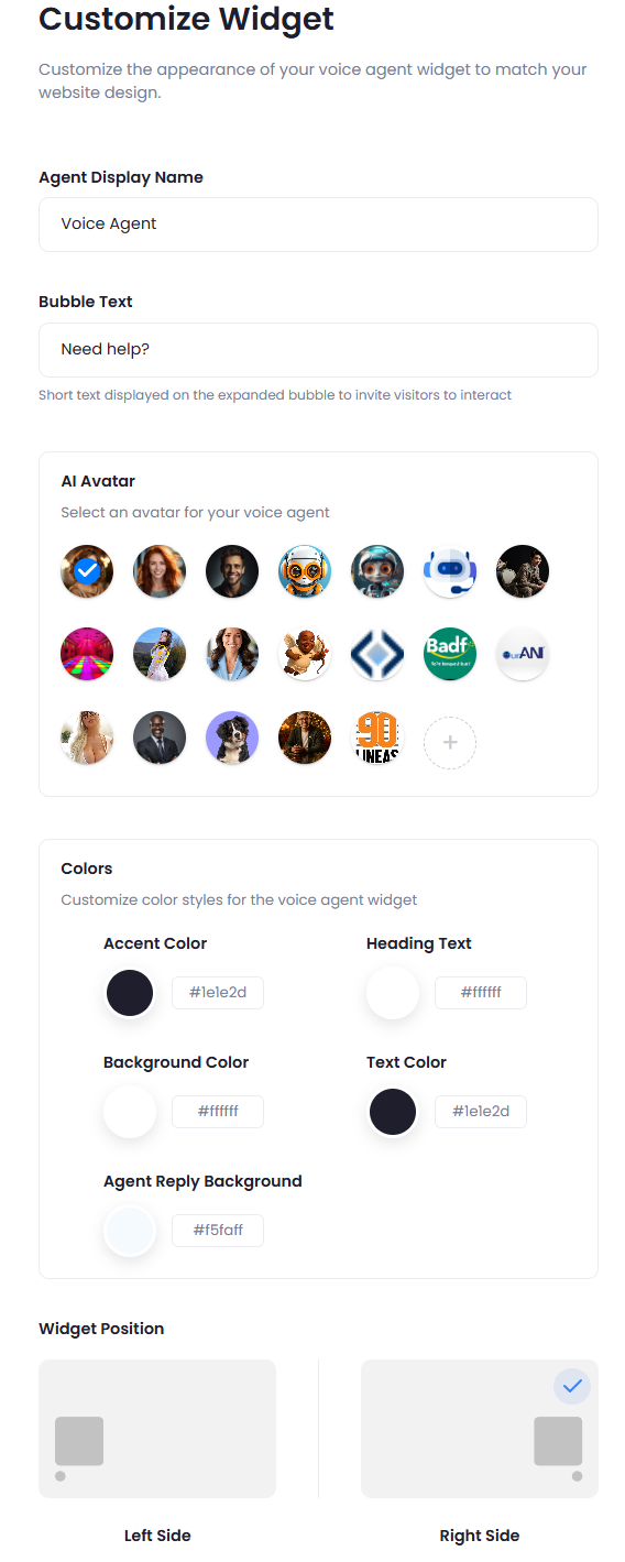 - Brand Alignment: Clients can customize chatbot aesthetics, including colors, logos, and avatars, to ensure a consistent brand identity and a polished website presence.