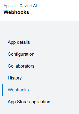 - Next, select the Webhooks from the menu panel on the left.