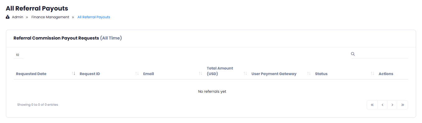 Whenever user exceeds the minimum payout threshold on their account, they can request a payout from your side, they can either request a Paypal or a Wire Transfer payment based on which option they select and provided relevant paypal of bank information. All the requests from users are stored under Finance Management -> Referral Payouts tab in the Admin Panel. From here you have full control to approve/process/decline the payout requests.