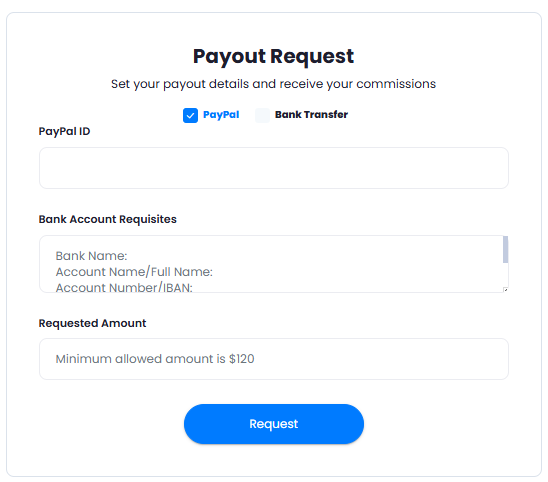 On that same Affiliate Program page, your users can configure their preferred payout methods along with required information.